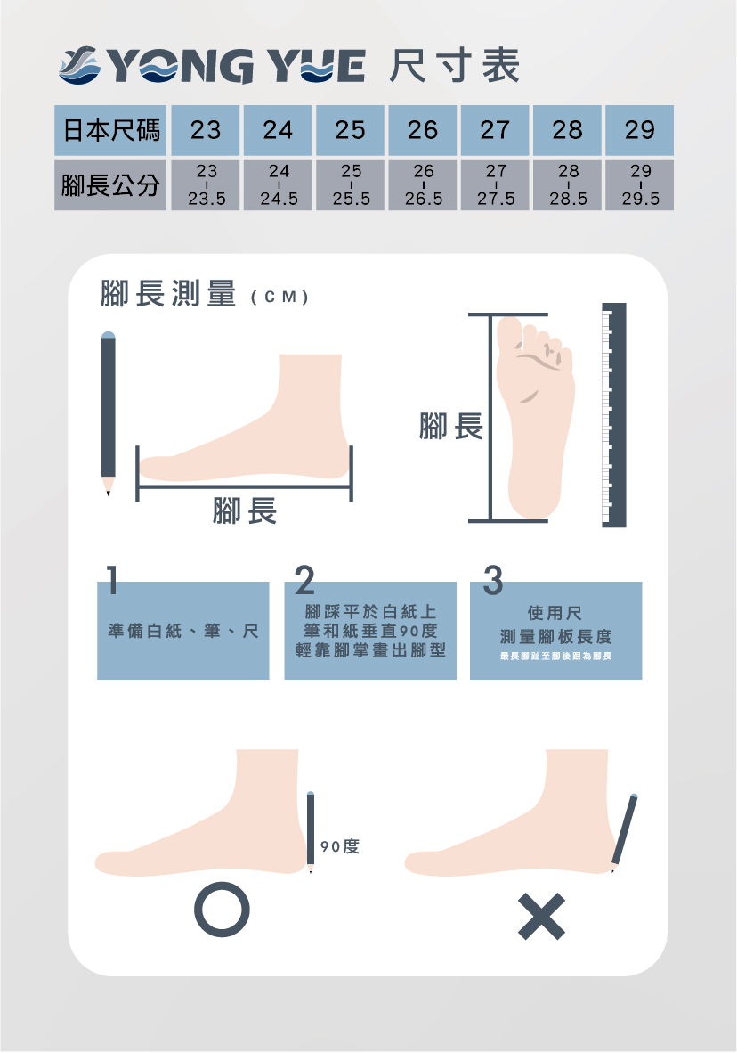量25公分請選擇25號,如量25.5公分穿25號會剛好,26號鬆一點。