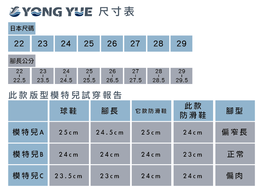特殊腳型者例如:寬腳板、腳裸肉多、腳板肉多、大小腳等,請自行斟酌加大尺寸