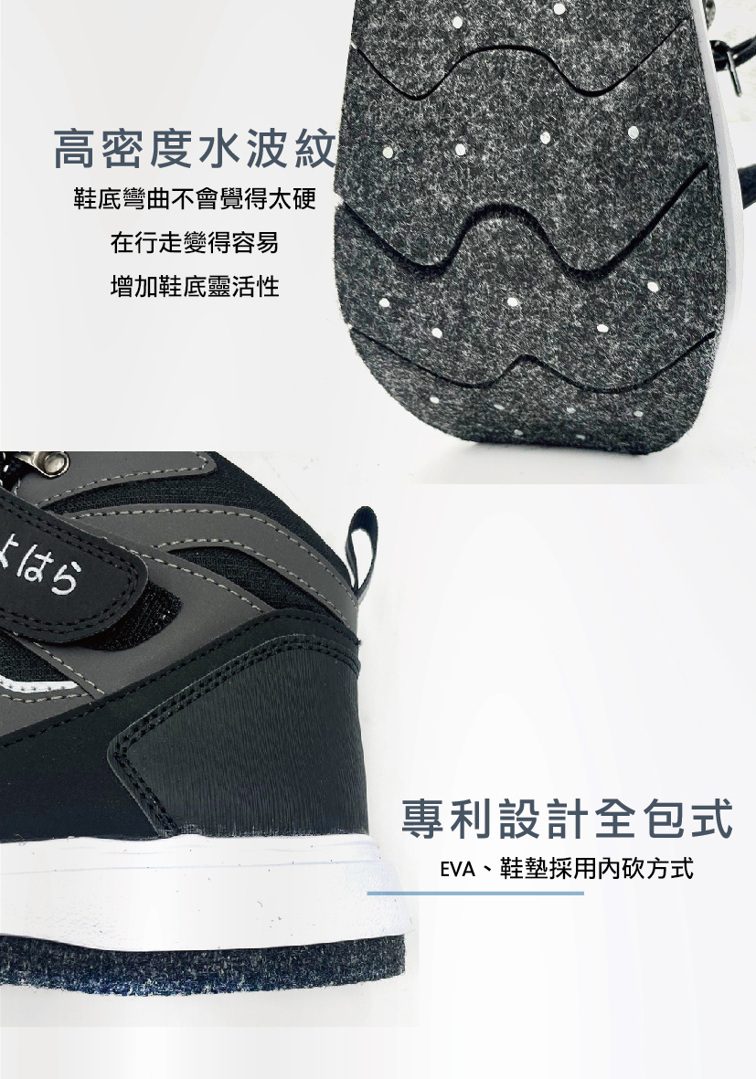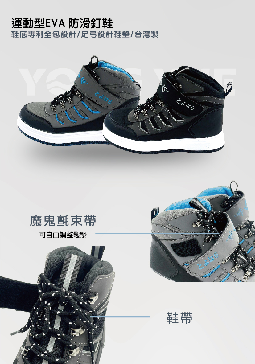 鞋底-專利設計全包式EVA、 高密度12mm水波紋割底毛氈、2.5mm鎳合鋼釘