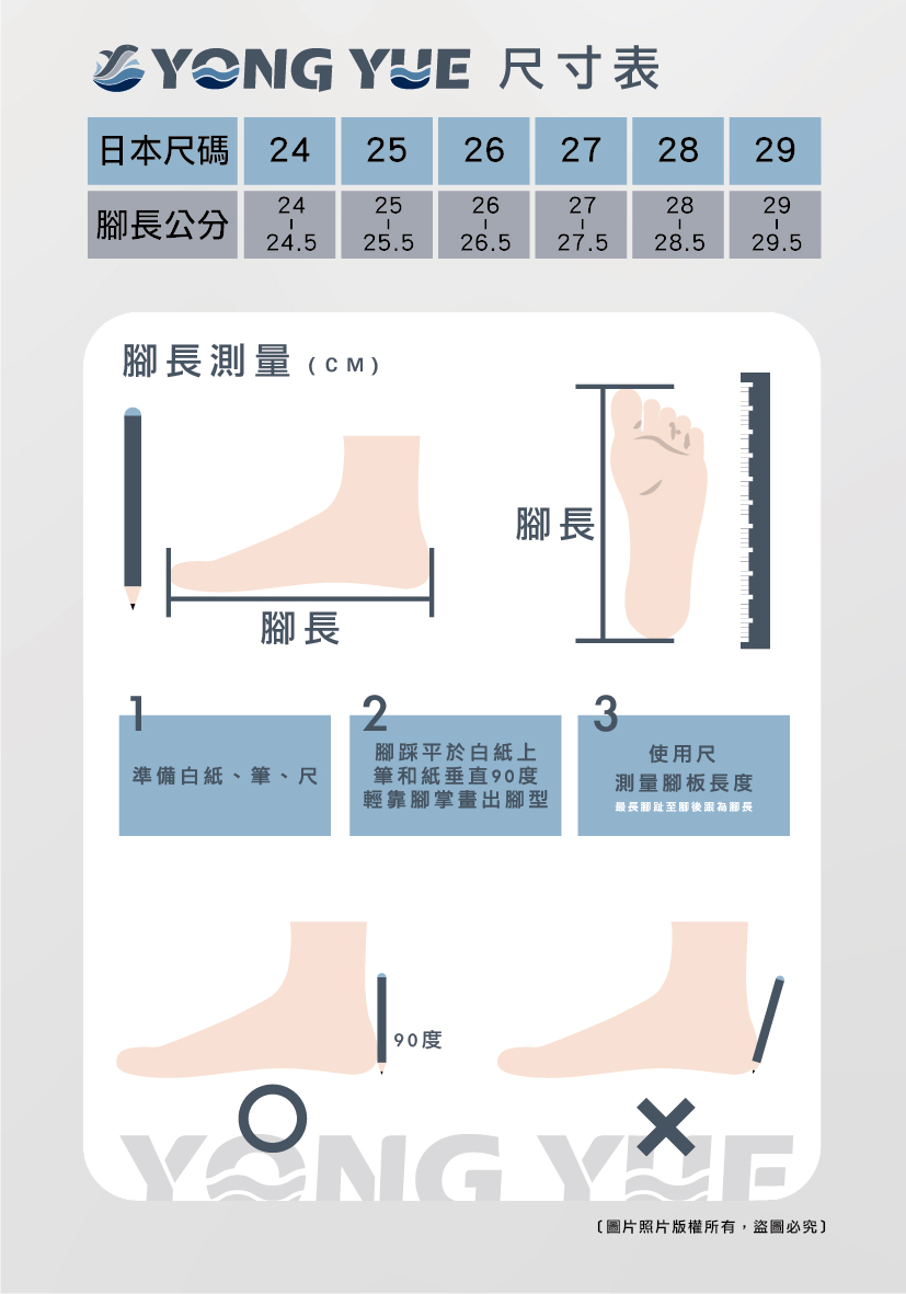 量25公分請選擇25號,如量25.5公分穿25號會剛好,26號鬆一點。