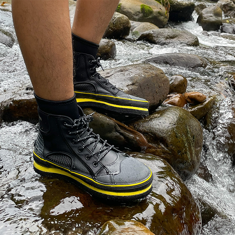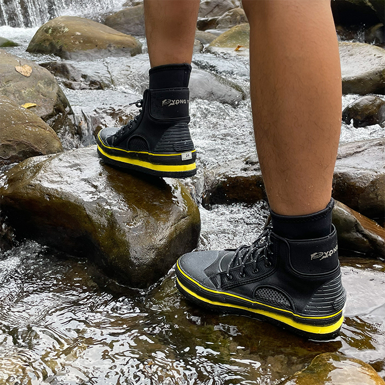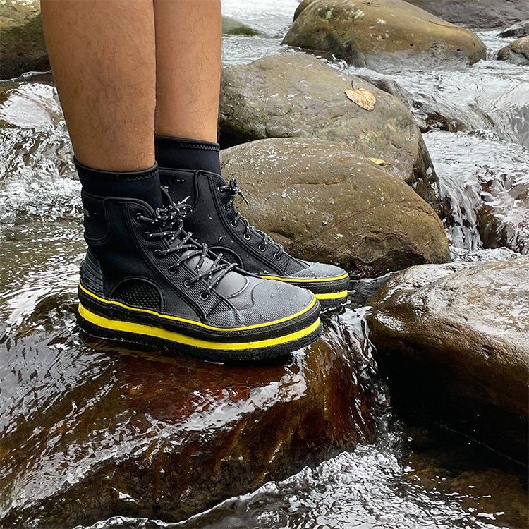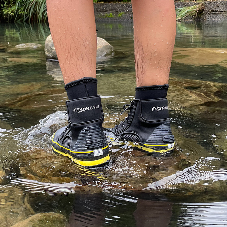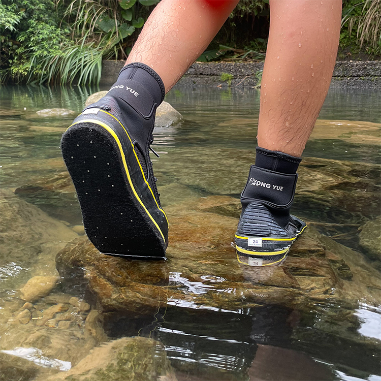 鞋身-3mm黑色潛水布、襪套設計、側面透氣網布