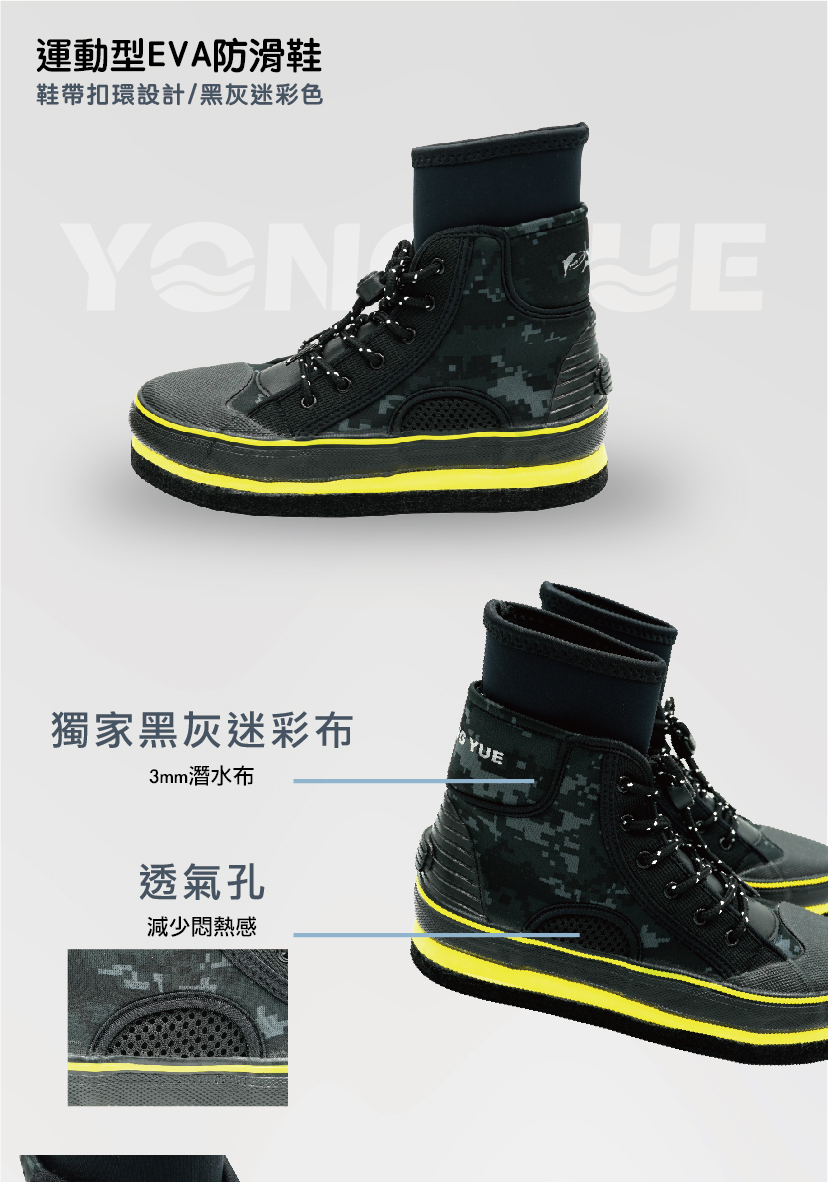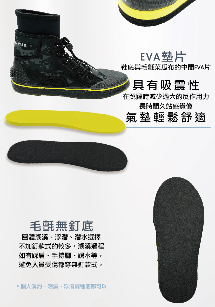 ■ 材質:鞋身-3mm潛水布、襪套設計、側面透氣網布