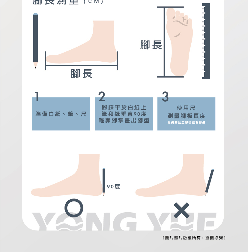 特殊腳型者例如:寬腳板、腳裸肉多、腳板肉多、大小腳等,請自行斟酌加大尺寸