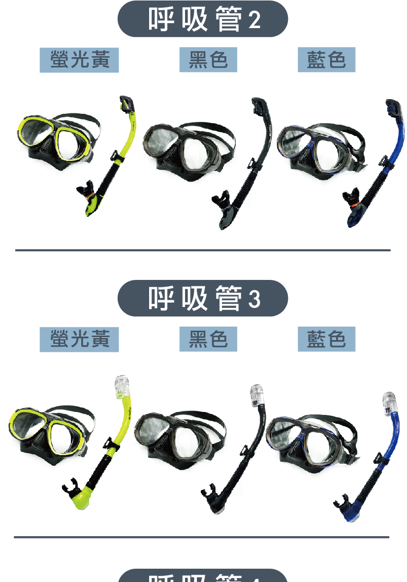 ■ 呼吸管材質:矽膠乾式、矽膠(軟管)蛇管、矽膠咬嘴
