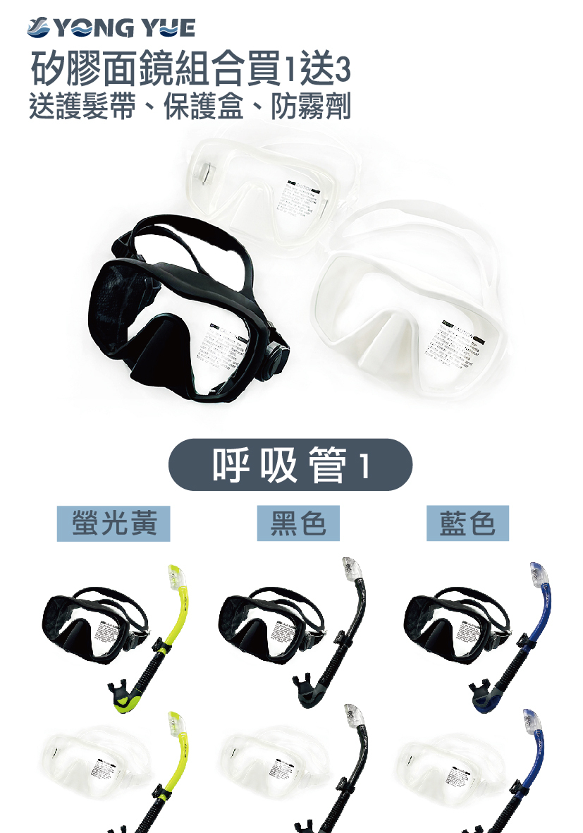 ■買一整組(面鏡+呼吸管)贈盒子、護髮束帶、防霧劑*贈品顏色隨機