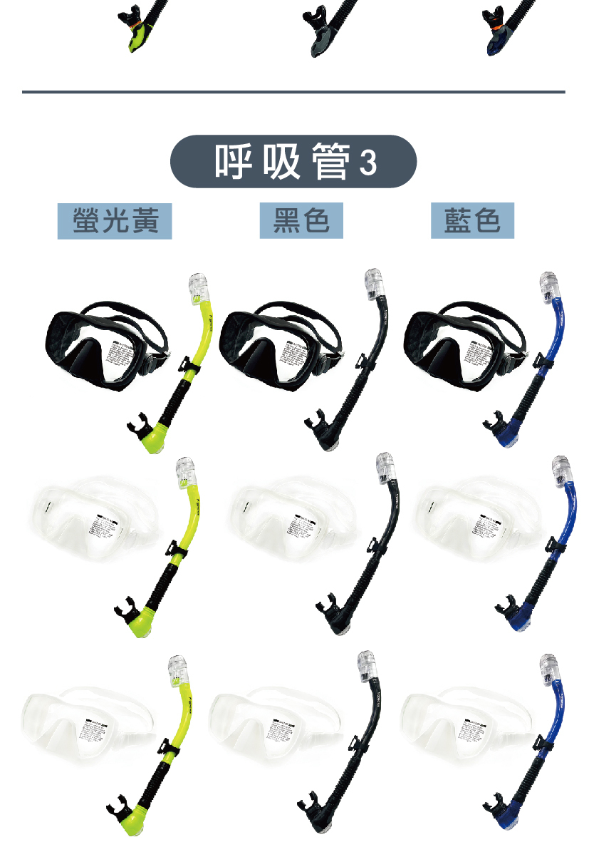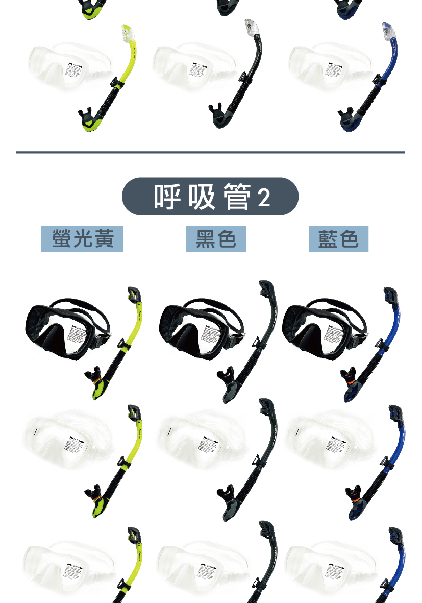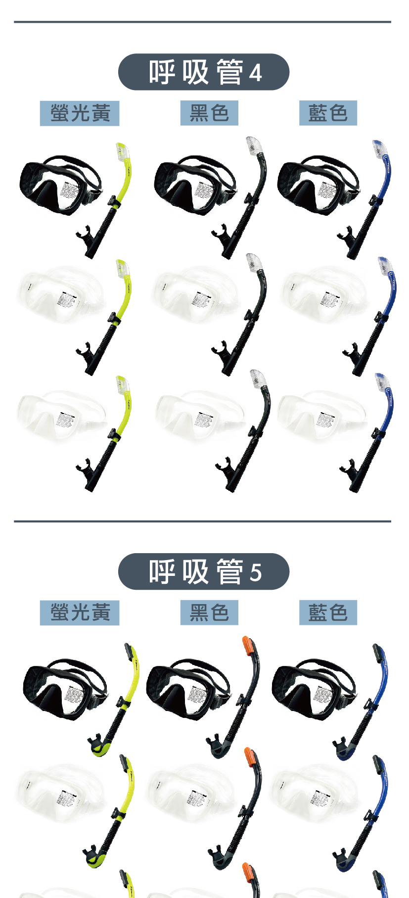 ■ 呼吸管材質:矽膠乾式、矽膠(軟管)蛇管、矽膠咬嘴
