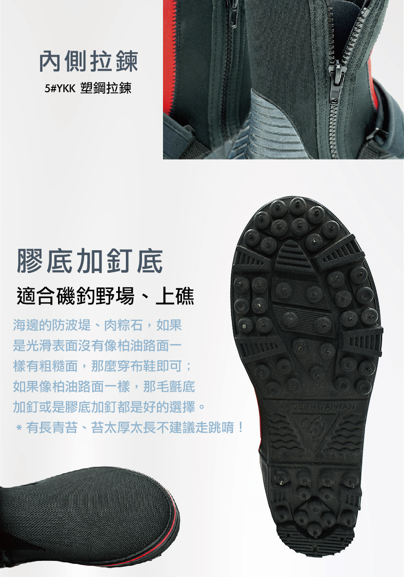 ■ 材質:鞋身-3mm潛水布、5#YKK 塑鋼拉鍊、SBR單面盲逢、內層上膠加強貼合