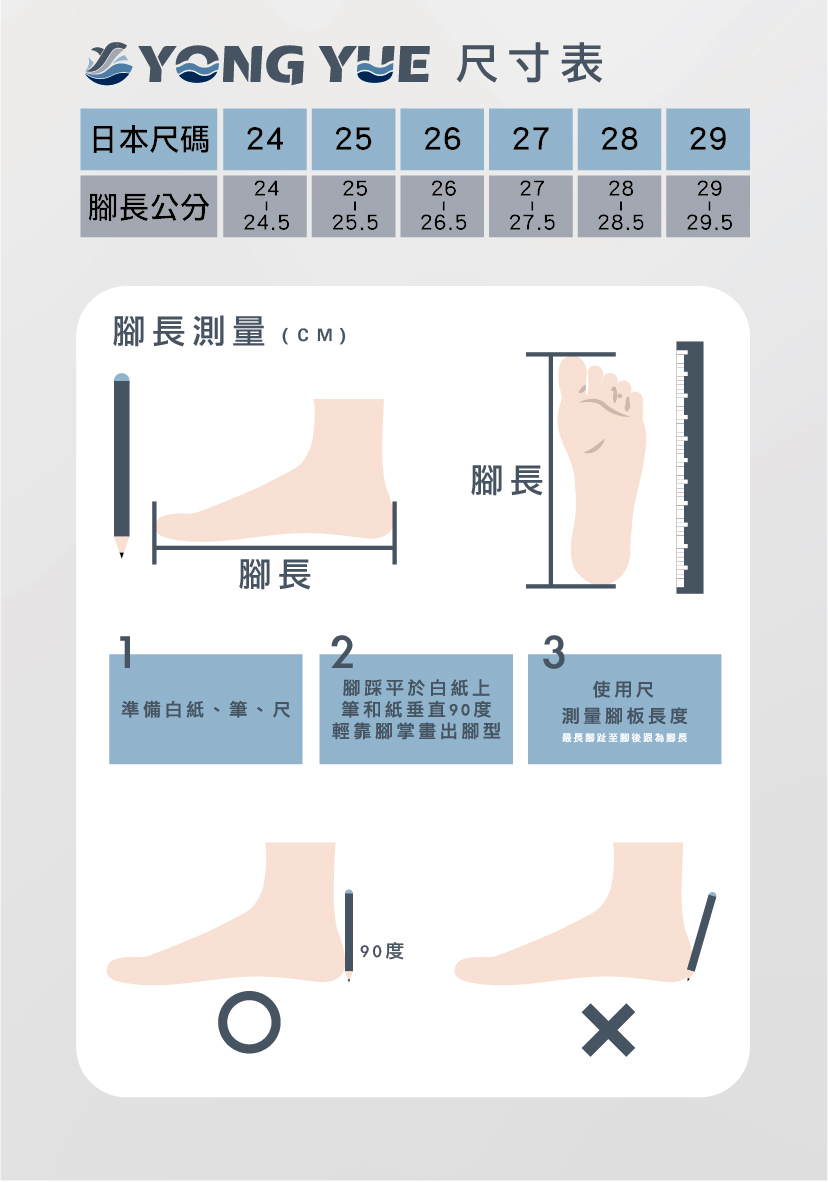 量25公分請選擇25號,如量25.5公分穿25號會剛好,26號鬆一點。