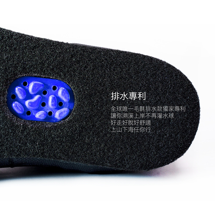 ■鞋底專利透氣排水孔設計,讓你溯溪上岸鞋內不再積水,好走好脫好舒適